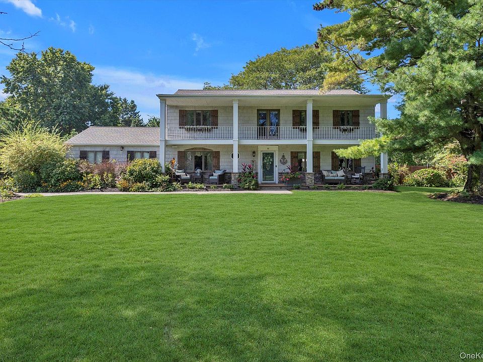 Stately colonial in Northport Bay Estates. Filled with upgrades and amenities, this traditional and tastefully appointed center hall colonial is perfectly situated on a verdant flat acre. The primary suite is one side of the second floor and includes a private deck, while three spacious bedrooms and new double vanity bathroom occupy the other. The main level includes a formal living and dining room, a gourmet eat-in kitchen with coffee station and wet bar, and a family room with fireplace and powder room. Across the back of the house, a sweeping deck overlooks the backyard, with its vegetable garden, dappled sunlit lawn, and play area. This is a home that dreams are made of an lifelong memories can be made.