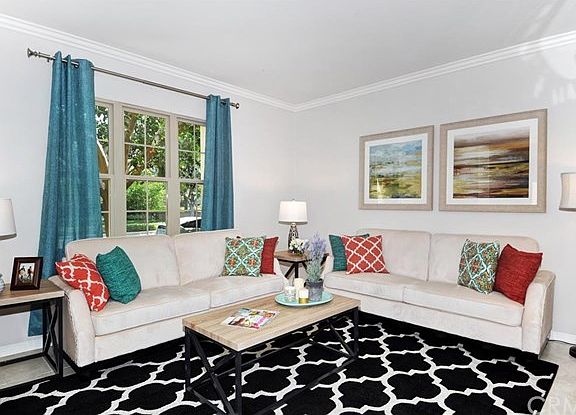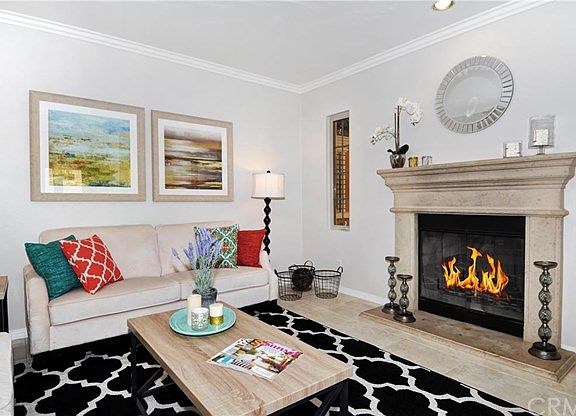 Nestled on a tree-lined street. this stylish and elegant home features designer upgrades throughout. Attractive curve appeal w/bright & sunny orientation boasts designer tile entry, generous family room w/large windows and a romantic fireplace. Large dinning room w/French doors lead out to serene patio w/mountain views. Gourmet kitchen w/Brand New crisp white glass-front cabinets, granite counters, subway tile backsplash and SS appliances including a Brand New Dishwasher. French Doors from Kitchen lead out to a professionally landscaped courtyard ideal for relaxing with morning coffee and casual al fresco dinning. Highly desired downstairs bedroom opens to a bright & sunny private yard. Upstairs features Large Size Master Suite boasting tree-line views, upgraded spa-like master bathroom complete w/his & her vanities, caesar stone, deep soaking tub, oversized glass-door shower and spacious walk-in closet. Sizable third bedroom with an on-suite, convenient laundry room and separate loft with extra cabinets adding to this home's value. Additional upgrades: custom paint, crown moldings, neutral berber carpet, epoxy garage. Steps away from resort style amenities of award winning Woodbury w/ 8 pools, heated spas, lighted Tennis Courts, Tot Lots...