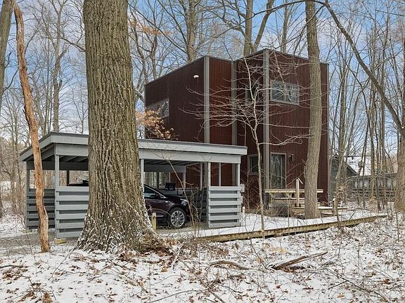 Don't miss this opportunity to live in the highly coveted and conservation-minded community of Tryon Farms. This 1 bed / 2 bath modern tree-house is tucked into the woods and offers peace, tranquility and privacy. Inside, the home has been upgraded with stunning Italian finishes in the kitchen, bathrooms, and laundry. New windows throughout. The open concept floor plan is spacious and provides plenty of room to entertain friends and family. If you want to embrace the outdoors, stroll or bike Tryon's 5+ miles of trails spread over 120 acres of shared and preserved woodlands, pasture, meadowlands and pond; or swim in the associations' eco-friendly pool. Located only 65 miles from Chicago's loop and a few miles to the beaches of Lake Michigan, this is the perfect get away. Book your showing today.