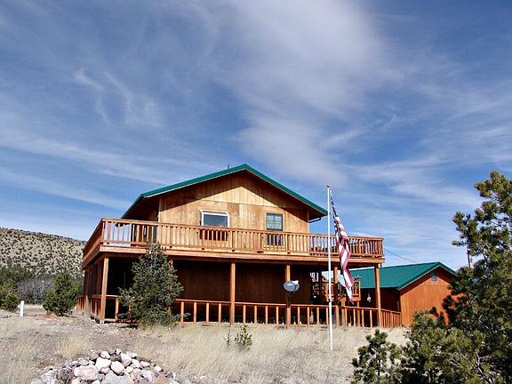 Tucked in a serene mountain country with panoramic views, this exceptional property is fenced on 11.14 acres. The 2 story home was custom built in 2013 and has approximately 576 sq. ft. of living space on the upper level. The garage has a washer and dryer hook up and enough space for one vehicle. Total square footage with the garage is 1,152. On the upper level, there are two bedrooms, one bathroom, kitchen, and living area. Each room has a sliding glass door that grants access to the wrap around deck providing impressive 360 degree views of Wallace Mesa and Horse Mountain. Outside improvements include a 24X18 detached garage for one vehicle, an overhead water storage, a 550 gallon underground water storage and 2 private wells. The property is at the end of the subdivision.