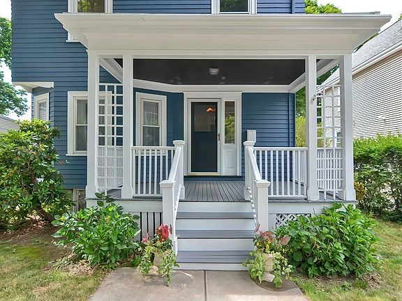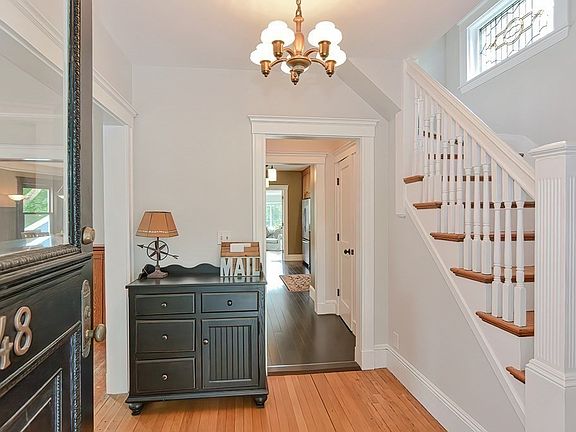OFFERS DUE TUES 6/28 AT NOON Turn of the century Colonial with a wink to the past. Ample sized rooms on first floor; living room, gracious dining room with original ornamental tiled fireplace/mantle, dark wood paneling, pocket doors, crown molding and built ins. The updated kitchen with custom wood cabinets flows to the family room with French doors, deck and wall of windows highlighting the verdant backyard. The stairway, accentuated by a stained glass window, brings you to the second floor with two good size bedrooms, a third smaller bedroom and an updated bathroom. Rear office on this floor accesses an adorable sunporch with loads of potential. The walk up attic has the fourth bedroom amongst the treetops and affords privacy from the other floors. Additional storage in attic and a clean unfinished basement houses the washer dryer and an operational "gardener's bathroom" with toilet and shower stall- plumbing in place for basement finish! The oversized 1 car gar is an added plus.