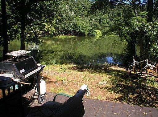 Priced to sell. Water front property, and first floor living at its best. 5rm 3 good sized bedroom ranch on the water. Open kitchen and living room. Kitchen has sliding doors to open deck, (needs new railings) to enjoy the view of the lake. Partially finished basement with rec room and dry bar, also a work shop area. Covered front porch, Nestled on quiet street. Your choice of gas or electric heat, central air, security system. Carefree vinyl exterior. Build your dock and get the paddle boat, row boat, or canoe ready to enjoy the lake.
