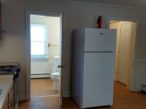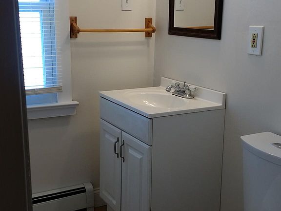 This half double is recently renovated with a new refrigerator and stove. It has a large yard in a quiet neighborhood. There is off-street parking in the back. Washer and dryer hookups in basement. Owner pays trash and sewer; tenant responsible for water, electric, heating oil. Cats and small dogs allowed with additional fee. No smoking. $24,000 minimum annual income, background check, credit check, and references required.