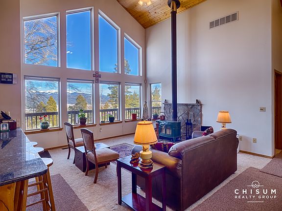 When you think of a mountain home, what comes to mind? Big mountain views? Whistling pines? Cozy fireplace? If so, look no further than 48 Vail Loop. Located in the sought after Vail Loop area of Angel Fire where the neighbors are friendly and the views are amazing. 48 Vail Loop sits on the north side of the loop with unobstructed views of Wheeler Peak and the Moreno Valley. Privacy is abundant, but you are only a short drive from the Angel Fire town center with plenty of outdoor activities. 48 Vail Loop features a large great room with soaring tongue and groove wood ceilings, a wood-burning fireplace, and a window wall looking directly at Wheeler Peak! The kitchen features granite countertops, stainless steel appliances, and tile flooring. The master bedroom is on the main floor with an ensuite bath. The main floor also includes two guest bedrooms, the second full bathroom and a laundry area. This home has a large loft and a lower level that features a second living area, a two car garage, large storage area and the fourth bedroom with an attached full bathroom. 48 Vail Loop comes mostly furnished so please ask to see an inclusion list.