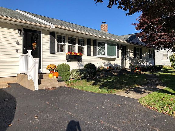 Your first impression will be the obvious pride of ownership both inside and out as this 2BR, 2 full bath Ranch captivates your attention. This well maintained 1,592 square foot home enjoys exceptional room sizes with a spacious eat-in kitchen, Features include: hardwood floors, Oil-HW heating, 1-car attached garage with new utility sink, all new stainless steel appliances including washer & dryer, perimeter basement system with sump pump, storage shed, rear patio setting with built-in seating that overlooks the impeccably maintained yard area... all this and central air too! Newer roof, new oil tank, new hot water heater, new attic fan, all new vinyl 6 over 6 windows and whole house Generac Generator. Freshly painted interior, garage and basement.. New utility sink in basement. Main floor washer/Dryer. Nothing to do except move in! Great starter or retirement home.