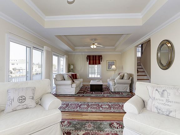 GREAT LOCATION for BOATERS- waterfront 3 bedroom 2 ½ bath home is only 7 houses from the Shore Acres community beach and the open water of Kettle Creek. House exceeds FIRM map requirements and is only -1 ft under the PRELIMINARY FIRM MAPS. Flood policy is under, $1,000 and transferrable. The house has a bright, simple elegance created by 9ft trey ceilings, neutral paint colors, hardwood floors and large windows. Pavers, pebbles and Trex decking makes this the ideal, minimal maintenance vacation home. Plenty of closet space and garage storage space supports year-round living too. 2nd floor laundry room. Plenty of on and off-street parking in this quiet area of Brick. Can be purchased with all furniture as well. Master bath has tub and separate shower