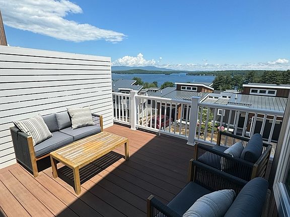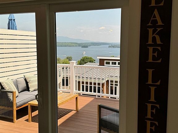 Your internet search is over: "Lookout Lake Winnipesaukee". Introducing Lookout Lake Winnipesaukee, 48 modern, luxury townhomes in the heart of the Lakes Region, overlooking Lake Winnipesaukee and Governor's Island, with a view of Mount Washington. Our on-site clubhouse, Base Camp, is highlighted by an outdoor pool, fitness center, putting green, indoor and outdoor gathering areas for social events, fire-pits, grills, full-kitchen and pool table! Lookout is designed for those seeking a maintenance-free, active lifestyle, during any of New England's four seasons. Our Stinson Floorplan features a first floor Owner's Suite with full bathroom, laundry room, second bedroom with full bathroom and two storage rooms. Second floor features open-concept living, dining and kitchen areas, and walk-out deck. A 1/2 bathroom, garage and main entry-way are also located on the second level. Images of like-kind, some upgrades may be depicted. Open House hours: Thursday - Sunday, 11am - 4pm.