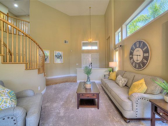 Beautifully maintained and Gorgeous Melinda Heights Home with 5 spacious bedrooms, 3 bath and a 3 car garage.The home exudes great curb appeal and will wow you the moment you walk in. Enter into the formal living and dining with soaring cathedral ceilings, gorgeous spiral staircase and abundant wood cased windows providing tons of natural light. The home features laminate flooring, whole house fan, leased solar, newer AC, newer plush carpet, newer neutral paint, new ceilings fans in all bedrooms, and new light fixtures. The kitchen is a chef's delight with modern white cabinetry, stainless steel appliances, granite countertops with custom glass tile backsplash and a large island as well as a breakfast nook. The family room is also spacious and open ups to the private backyard finished with pavers, covered patio and ceiling fan, stacked stone built-in BBQ with bar and stone fire pit. Downstairs guest bedroom and fully upgraded bath is another big plus. Upstairs features the spacious master suite with plantation shutters, view, and master bath with a separate soaking tub and shower and a big walk in closet with built-ins shelving. 3 secondary bedrooms and another full bath are down the hall, and one bedroom is large enough to be used as a bonus room. Walking distance to Blue-Ribbon Melinda Heights Elementary,Altisima park, and Altisima pool, & tennis courts. Hurry this home wont last!