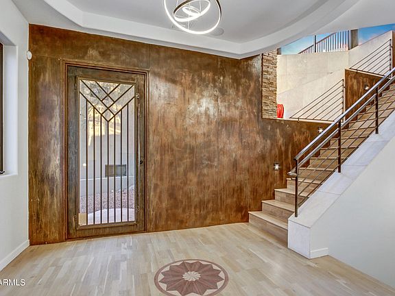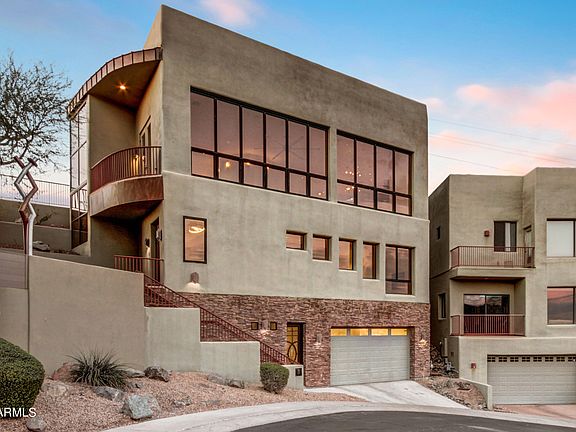 BACK ON MARKET. Stunning Views! Central Corridor Trifecta - SUNSETS, CITY LIGHTS and MOUNTAIN VISTAS. This home has a LOFT LIKE feeling and CITY VIBE . Soaring ceilings and gorgeous natural light. Architecturally appealing. The upper level is the main living area with an oversized secondary BR w/en-suite, the second level is the primary owners suite, and the lower level has a Den w/en-suite, and separate private entrance to street. The sleek heated saltwater pool is perfect as a backdrop to the sunset. Super clean with newer AC units, a new elevator, recently sealed roof and new pool chlorine generator. Gated with private access to hiking. Easy access to the Biltmore, and DT Phoenix and Physician approved location! Phenomenal VIEWS. Appraised at $1,020,000. Show & Sell!