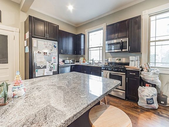 • Features: Flooring - Hardwood, Pantry, Countertops - Stone/Granite/Solid, Countertops - Upgraded, Kitchen Island, Recessed Lighting, Gas Stove, Crown Molding