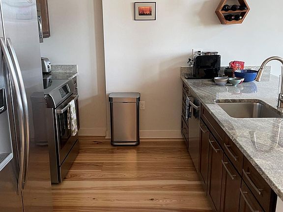 Don't miss your chance to live in a high-end, luxury loft in the heart of the Canal District! Approx. 1300 SF of penthouse-style living in a top floor condo with two levels. Main level features an open-plan living area with 30-foot ceiling, exposed brick wall and chef's kitchen. Kitchen features high-end Bosch Range Induction Stovetop and Convection Oven; Whirlpool Gold Fridge/Freezer, Dishwasher, and Microwave; and bar-style seating for 4 at huge granite countertop. The main level also has the den/office, a second full bathroom and a custom-built, under-stairs walk in closet. Top "loft" level is a luxurious, bedroom sanctuary with two custom California Closets, in-unit washer/dryer and a full bath including separate shower and tub. Stunning, must-see, Hickory hardwood floors throughout. Huge double-paned windows keep the noise out while providing an amazing view of the Canal District and Downtown. Remote controlled, black-out, Hunter Douglas shades on all windows. Common-area amenities include fitness center, resident lounge, bike storage and Amazon Locker. Security fob required to access entrance, elevator, top floor, and common-area amenities. Step out your door to Restaurants, Breweries, Bars, Polar Park, Worcester Public Market, Union Station and more! Easy access to I-290. LEED Silver Certified building is professionally managed. Central heat, cooling, and hot water. Renter pays electricity. One assigned, off-street parking space included in rent. Additional nearby, off-street parking available for monthly rent in City-owned lot. Close to UMass Medical and other area colleges and universities. Unit has been owner-occupied with remodel and upgrades all within the last 3 years. Renter pays electricity ($50-$80/mo). One assigned, off-street parking space included in rent. Additional nearby, off-street parking available for monthly rent in City-owned lot. Maximum of 2 cats allowed. NO SMOKING BUILDING.