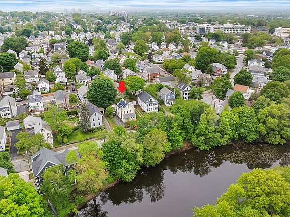 Nestled in the sought-after Hillside neighborhood with unobstructed Mystic River views, this home offers exciting potential. Offered in its current condition, the home boasts significant updates including 2018 solar panels, a 2017 roof, and a new 2024 furnace. Inside, discover a spacious layout that could accommodate four or five bedrooms, complemented by two fireplaces, a contemporary kitchen with included appliances, gas cooking, maple butcher-block counters and Pergo flooring, and a formal dining room. Hardwood floors flow throughout, enhanced by French doors and a cozy heated front enclosed porch. Enjoy 2.5 updated baths and a finished 3rd level with skylights and 2 bds. Outside features a large level lot, private deck, and an oversized detached heated garage with electricity, alarm, and loft. Benefit from easy access to Tufts, the T, grocery stores, and Medford Center. It also includes a built-in electric car charger and a Tesla battery for essential off-grid power.