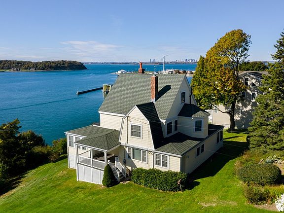 PANORAMIC VIEWS of the bay, harbor, and Boston Skyline from this direct oceanfront home! This beautiful 6 bedroom , 3.5 bath home is filled with character, charm and architectural detail. Every day is like a vacation as you spend evenings relaxing on the wrap around enclosed porch and take in the 180-degree ocean views! This home is a place with space for family and friends to gather for holidays and weekends. The gorgeous Boston skyline is simply stunning as you sit in your backyard, breathe in the ocean air, and feel the calmness of nature and privacy all around you. Inside you have stunning ocean views from almost every window. The exterior was completely renovated with cedar impression siding, custom windows, and a 50 year architectural roof. The LOCATION IS one of the BEST in HULL with water and beach access via stairs next to the property. Minutes to the Boston commuter boat with a 30 minute cruise to the City. A unique combination of Coastal Living with easy City Access!