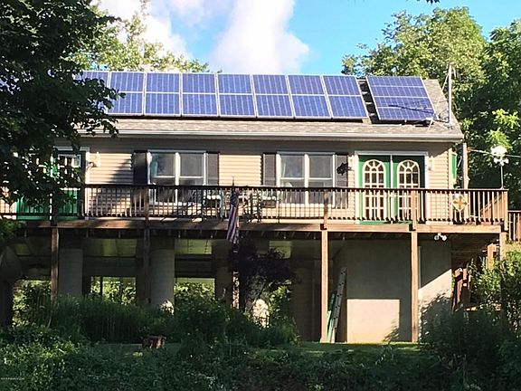 RIVER FRONT approx. 12 year old ranch home (erected on giant pillars and boasting approx $50,000 of solar panels.) Tastefully done interior with huge deck with beautiful, calming views. HYDRO-SIL COMFORT HEATING....TOTAL ELECTRIC plus heating was $500.00/Year.