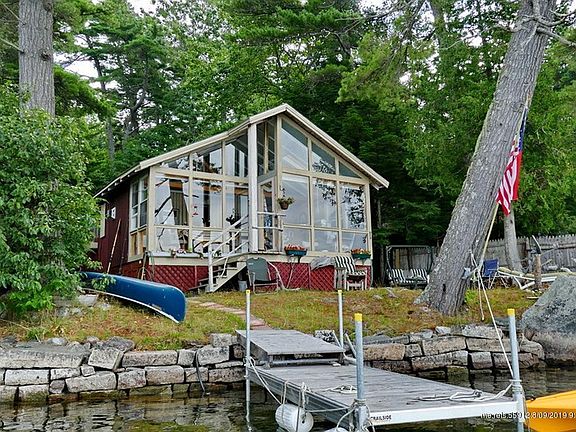 Rare setting just a few feet off pristine Long Pond with two cottages. Main house is over 1400 sq ft with glassed in porch almost hanging over the water and then a 500 sq ft guest cottage that has been used as a rental. Very comfortable lakeside living with two docks and 100' of shoreline. Amazing western sunsets and sometimes upward of 17 loons at once gather out front on the calm mornings. Fantastic fishing on the more quiet end of the lake that can include Bass, Salmon, Trout, Yellow Perch and other species.