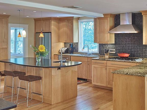 - Kit Dscrp: Flooring - Hardwood, Countertops - Stone/Granite/Solid, Kitchen Island, Stainless Steel Appliances, Open Floor Plan, Recessed Lighting, Remodeled, Wine Chiller, Lighting - Pendant