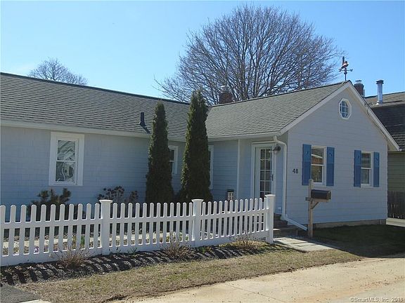 Cottage Chic! Just beyond the beach, this adorable 2BR, 2 Bath cottage-ranch sparkles from the road! Welcoming perennial gardens and neat bluestone walkways lead you to the sunny, private patio oasis. If you have a green thumb, you can indulge in raised garden beds of flowers or veggies! BEST of ALL, You will not be disappointed in this 1400 SF updated open-floor plan with hardwood floors. Cozy LR features a gas stove to take the chill off transitional seasons & chilly winters. Open concept floorplan flows from LR to dining area and to the efficiently designed galley kitchen with granite island and counters. A great set up for people who like to cook and entertain at the same time! Open dining area with built in cabinetry and picture window overlooking the sunny patio. Both bathrooms have been updated with new glass showers & radiant heated tile floors. Two BRs each offer good closet space. Off the kitchen there is a bright sunroom converted to a four-season FR room with electric BB heat. Plus there's a full basement with a big hobby/exercise room. 6 year old deck with natural gas grill connection and a 2nd driveway. A 7-minute walk will land you at the sandy beach on LI Sound. This is a perfect one-floor charmer for starters or a retirement haven!