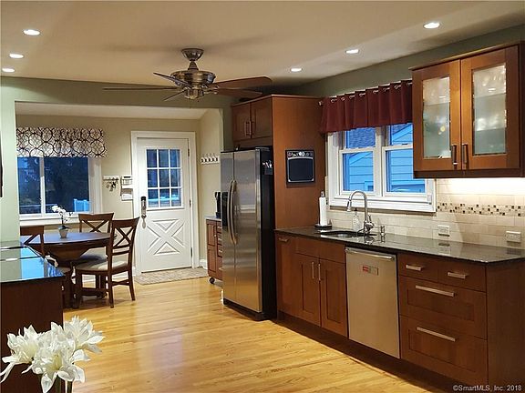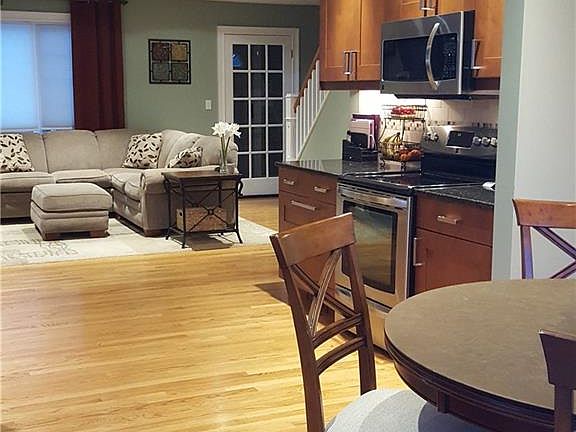 Sparkling impressive modern kitchen, with eat in area. Liv/Rm stone fireplace. Hardwood floors throughout first level* except bathroom which is impeccable additional tile radiant floor heat. Extra room can be office or den or easily 4th bedroom. Deck leads to beautiful backyard, right off kitchen. Smart home automation to include HVAC and lighting control system. Pre wired for speakers in various locations. Surveillance equipment in use.