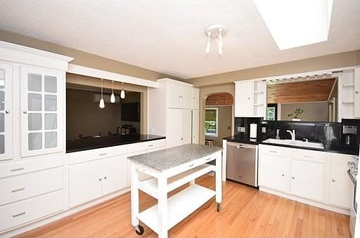 Expect to be impressed! Remodeled kitchen (2007) offers kitchen island, granite c tops, newer appliances opening to dining area & family room w/ hdwd flrs. Just off the back of the kitchen offers a mud rm w/ laundry area & play rm giving access to the outdoor deck area dining. Bright formal living room awaits you with brick hearth frplc for those cozy winter nights! The right wing offers a master bdrm w/ hdwd flrs, remodeled full bth & two additional bdrms w/ hdwd flrs. Property has two mini split a/c units. Outdoor enjoyment begins w/ this private, fenced in back yard, patio area & two car detached garage w/ a home office studio of 432 sq ft as per seller. This office was converted (2012) from a 4 car garage that now offers heat, a/c inside the home office & security system. Lower level offers media rm w/ fireplace, projection screen, projector to stay, guest bdrm, full bth w/ granite c tops & wine cellar. Another bonus, this property is within minutes from Mt Holyoke college.