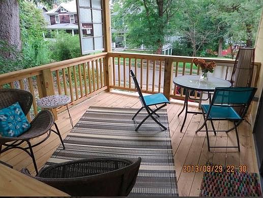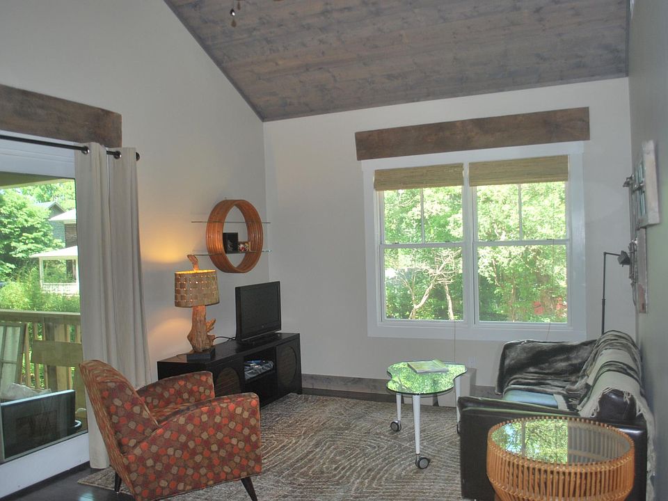 This furnished 1 Bedroom / 1 Bath retreat is nestled in the beautiful historic district of Montford. $1595 mo. water included. Tree house hideaway is full of personality with vintage weathered wood, vaulted ceilings and unique furnishings. Central heat and AC. Full bathroom with tub and washer/dryer in unit. Enjoy coffee on the breezy covered porch, surrounded by giant oaks and lush landscaping. Indulge in the well-equipped stainless kitchen with cherry wood cabinets, or choose from the many fine restaurants close by. It is a very enjoyable 2 short blocks walk to downtown Asheville, Whole Foods, restaurants and entertainment. Central air. Smart TV. $1650 month, water included Available 9/1/25 Water included cable and electric charged to tenant minimum 6 months