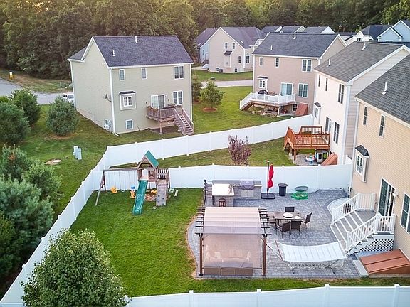 Discover the charm and convenience of this free-standing single-family condo at Milford’s desirable Zain Ridge. Perfectly situated just moments from I-495, top-rated restaurants, and shopping. This meticulously maintained home offers a spacious and open floorplan with cathedral ceilings, gleaming hardwood floors, and abundant natural light. The stunning living room features a cozy fireplace, while the kitchen boasts cherry cabinets, granite countertops, stainless steel appliances, and a dining area leading to a large patio and lush backyard for great summer cookouts and entertainment. The primary suite impresses with tray ceilings, a walk-in closet, and an ensuite with a double vanity, and tile shower. A second generously sized bedroom, bonus room with a closet, and convenient 2nd-floor laundry complete the upper level. Additional highlights include a 2-car attached garage, gas heating, central A/C, and low HOA fees. Complex abuts the 14 mile CHARLES RIVER RAIL TRAIL. Don’t miss it!!!