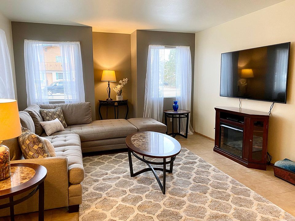 Hi, we are renting our cozy, fully furnished condo, 15 min walk to downtown Leavenworth. Come get away from everything and do a month to month lease. Monthly rent includes all utilities! Condo has 2 bedrooms, 2 full baths, updated kitchen with newer appliances, washer & dryer, new large comfy couch with a large 65" smart TV connected to Netflix and a DVD player, free WiFi and board games! The master bedroom has a queen bed, a smart TV with an attached private bathroom. The guest room has a full bed and twin bed and a pull-out mattress for the 6th guest with a full bathroom just across from the room. We have a small backyard that faces that main road, where you can sit out and enjoy a zip of coffee, provided complimentary. We have bought all new linens, towels and the kitchen is fully stocked with essentials for you to cook. There is one reserved covered parking space and the front door has an electronic keypad The Condo is available on April 1st (pro-rated rate for the month of April). The rental rate is $2,000 per month (includes HOA, water, sewer, garbage, electricity and WiFi) and the term is month to month. Small dog and cat allowed, and no smoking. The move in requirements include first month's rent ($2,000) and a re-fundable security deposit of $2,000. An application fee of $40 for each resident over 18 years of age is required. Renter must agree to abide by all HOA rules and regulations. Details: Availability date: April 1, 2020 Fully Furnished, Month to Month Rent Monthly Rent: $2,000 Water/Sewer/Garbage/Electricity & WiFi: Included in Monthly Rent Pets: Cats and small dog Deposit: $2,000 refundable Application fee: $40 app fee per adult Amenities: Laundry: In Unit Parking type: 1 reserved car port parking Appliances: Dishwasher, Refrigerator, Garbage disposal, Range/Oven, Coffee maker, Toaster Exterior: Balcony with outdoor lights Please e-mail me about yourself, how many people and if you have any pets. Thank you Month to Month Lease Condo is fully furnished Rent includes all utilities (water, sewer, garbage, electricity & WiFi) Must pay first month's rent of $2,200 and a re-fundable security deposit of $2,200