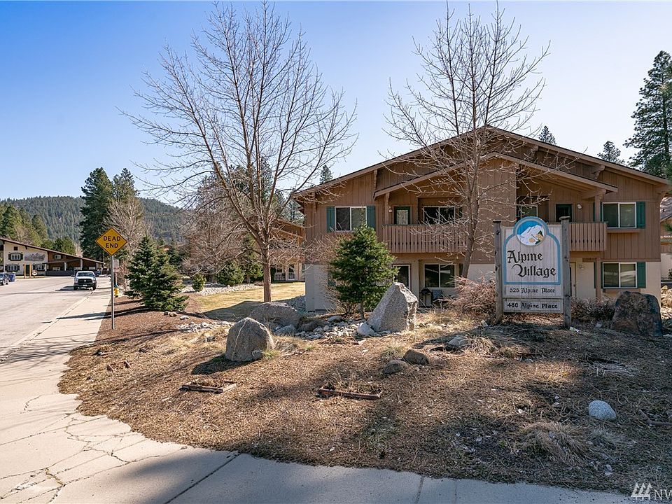Desirable main floor condo in Alpine Village. Just blocks from downtown, you and your guests will have quick access to all that Leavenworth has to offer. Spacious open concept kitchen, living and dining room boasts abundance of natural light. Master features en suite 3/4 bath and large closet. Take advantage of the carport for one and breathe in the fresh mountain air on your covered patio. Excellent opportunity for income potential as vacation rental.