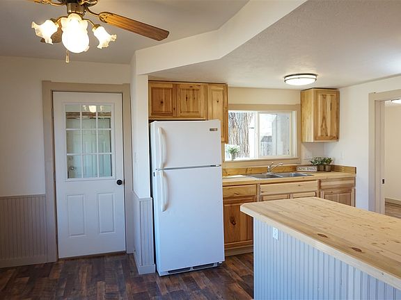 Owner says SELL! Remodeled and move-in-ready! 100% Financing with Rural Development Loan. Freshly painted, new kitchen cabinets, new windows and new flooring! Located on a corner lot on the edge of town with mature trees and views! Bonus detached studio and a large storage shed, could be used as a studio, mother-in-law set up or rental. Home currently on 4 lots, this sale is for the home, buildings and 2 lots. Additional 2 lots to the south may be purchased for an additional $16,000. Bring Offers! Listing agent is related to seller. Call today to view!