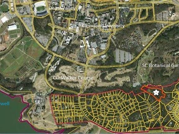 This 9.17 acre parcel is located in the heart of Clemson and is approximately 2.4 miles from Death Valley, Doug Kingsmore Stadium and Littlejohn Coliseum. The homesite is situated at the end of a 1/4 mile private drive and is flanked by a 2 acre pond and surrounded the 295 acre Clemson University Botanical Gardens. Arguably, the finest residential lot in Clemson and unquestionably the most desirable for the Tiger enthusiast. This property is a Legacy property and sure to be passed on in the family for generations of Tiger fans. This magnificent 9+ acre parcel is located in Bentbrook Farms, a highly desirable residential development consisting of 16 homes on minimum 2 acre parcels. The building site sits elevated among hardwoods and overlooking a picturesque 2 acre pond teaming with bass and bream. The lot has been recently under-brushed exposing the gentle lay of the land and making the lot useable even before Custom home construction. The property represents one of the most rare opportunities in Clemson and perhaps the largest remaining, single lot available. Located approximately 2 miles from Clemson's Death Valley, the property offers very easy access to Clemson events as well as day to day support services and access to the major thoroughfares. Note to maintain the uniqueness and character of this property it cannot be subdivided.