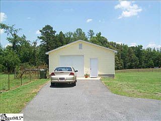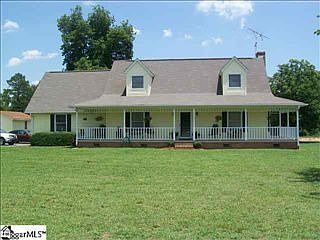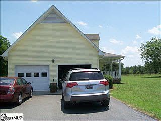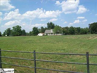 Pretty Cape Cod 3br/2ba home with large wrap around front porch on 11.11 fenced and cross fenced acres with creek. Master bedroom is on first floor with wood burning fireplace, bay window, and walk in closet. Master bath has double sinks in a separate area from tub and commode. Hallway with linen closet, clothes/coat closet and laundry closet leads from dining area to master. Ktichen has pantry and great cabinet and counter space. Patio door leads from dining area to a charming covered porch in back. Easy to keep ceramic tile floors in the entire downstairs and in upstairs bath which also boasts double sinks in a separte area. Two large bedroom upstairs both with good closet space and 8 by 5 alcoves beneath the dormer windows. There is garage space for 3 cars with attached and detached garages. Large shade tree in backyard and nice garden spot. There are several pastures suitable for horses and/or cows. Country living, but very convenient to BMW, Greenville, and Spartanburg.
