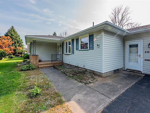 Knock knock! An incredible opportunity awaits you at 480 Biscayne Drive in Greece! Situated perfectly in a cul de sac this charming ranch-style home in Greece offers instant equity with just a few cosmetic changes. Featuring 3 bedrooms and 1 full bath, this home is brimming with character. As you step inside, you'll be greeted by a bright and airy living room complete with a cozy fireplace that seamlessly flows into the dining/kitchen area. The spacious kitchen is equipped with plenty of cabinets for your convenience. Each bedroom boasts gleaming hardwood floors. Huge backyard ideal for hosting summer gatherings. With an attached garage, snowy winters are no hassle. Be the proud new owner of this lovely home. All offers are due by Monday 7/29 at 2 pm.
