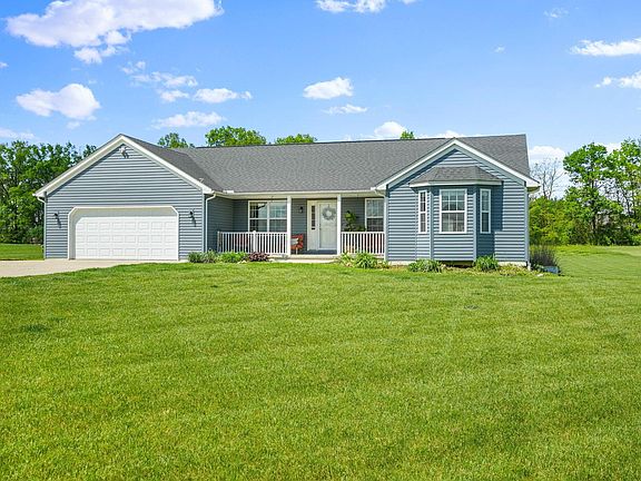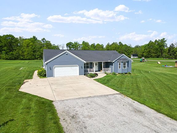 Discover serenity in this exquisite ranch home on 2+/- sprawling acres! This RANCH 4 BEDROOM HOME boasts 1,942 sq ft of elegantly appointed space on the main level, PLUS a fully finished 1750+/- sq ft basement with egress window and storage. The great room seamlessly transitions into a formal dining area and a chef's delight kitchen, featuring an island, pantry, and modern appliances. Large windows provide light in the four-season room with vaulted ceilings and patio access. This home includes four cozy bedrooms, three full baths, and first-floor laundry. Additional amenities include a heated 2-car garage, a whole house GENERAC generator, 2 SUMP PUMPS and well maintained grounds with a shed, children's play area and fire pit relaxation area.