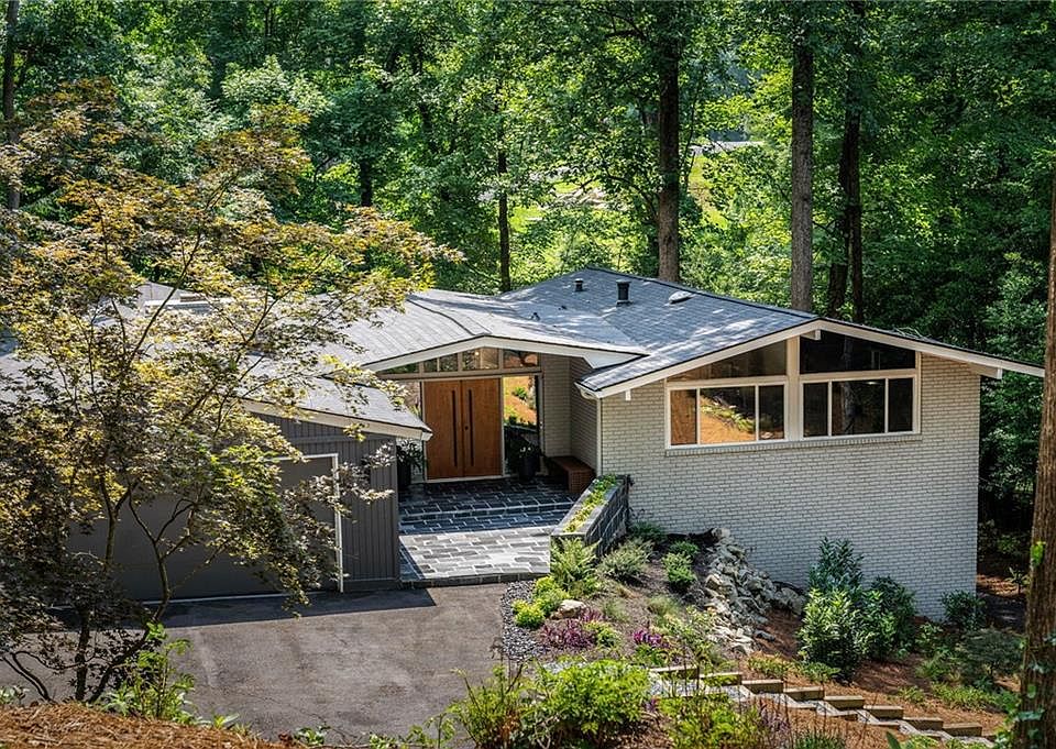 Sleek mid-century modern home in amazing North Buckhead location. Den with wall of windows, beautiful tree lined views, tons of natural light. Wood paneled family room with fireplace. Updated kitchen with breakfast bar, stainless appliances, skylights. Enviable features include vaulted ceilings, hardwood floors, open and airy floor plan. Expansive primary suite with large walk-in closet, separate tub/shower. Daylight terrace with golf simulator room, living room, bed/bath, office. “Zen” like feel throughout, professionally landscaped yard, great outdoor patios, super private. Quiet street seconds to the best shopping, restaurants, parks in Atlanta!