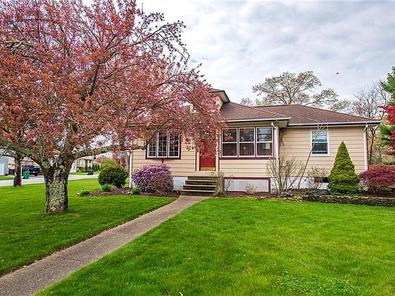 This spacious, well-maintained home boasts a beautiful new kitchen, ductless cooling, and an oversized and lush yard. Two large bedrooms are located on the first floor, with a gigantic full bathroom between them. The primary bedroom has two closets and is big enough for additional seating or furniture. The new kitchen is bright and well-organized, with tons of storage and beautiful counters. You'll love the cozy fireplace in the living room, and the sunny screened-in porch is perfect for summer evenings. Upstairs is another large bedroom with a full bath and a generous closet. The rec room over the garage has a pool table and dry bar; what a great spot for entertaining or watching the game! The attached garage means you'll stay dry during rain showers and is large enough for your cars and all the bikes and kayaks. The 13,000+ sq ft lot has room for gardening and play, and the large back deck and patio mean you can enjoy the outdoors in style. The basement has great potential and storage space, with the laundry and several clean and dry rooms. Located in a tree-lined neighborhood, Church Avenue is near Connecticut Beach and only 18 minutes south of downtown Providence. This beautiful home has a great layout and a super-sized yard in a quiet neighborhood.