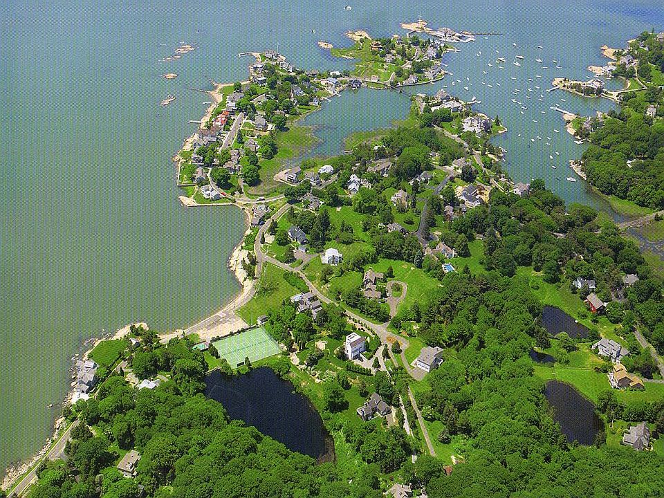 Impeccable Historic antique federal farmhouse in desirable Sachem’s Head Long Island waterfront area with circa 1898 barn, featuring offices and living spaces, and overlooking idyllic fresh water pond.