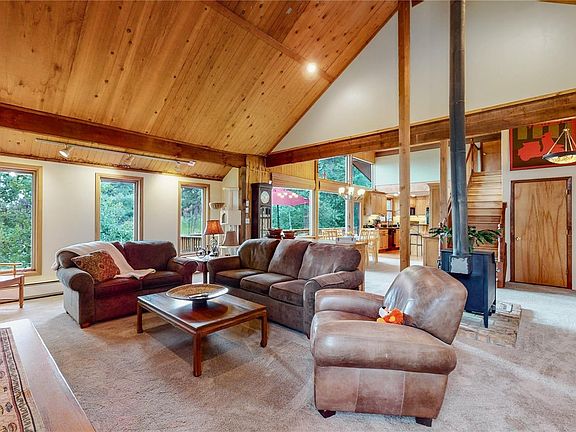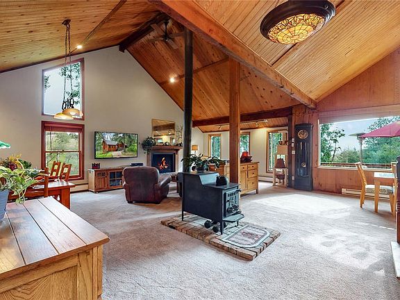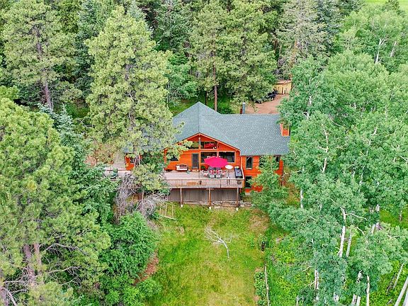This warm and welcoming mountain home is tucked into a gorgeous, secluded spot in the largest, mature aspen grove on Lookout Mountain. What could be better than the sound of the quaking aspen leaves fluttering in the breeze, as you enjoy your morning coffee or afternoon tea on the massive wraparound deck? You can also savor the view of the aspens from your kitchen window, where you'll find a very thoughtfully designed kitchen. Knotty alder cabinets and flooring, granite counters, an oversized granite sink, black & stainless appliances, double oven, and so many more features make this kitchen a joy in which to cook and entertain. Just off the kitchen is a bright & cozy sunroom - fully finished, insulated and heated make this a year round space to enjoy. A walk-in pantry, wet bar, and full bathroom are all within proximity of the kitchen as well. On the other side of the kitchen is a spacious dining area that also faces the dozens of aspens in your private meadow. And finally, to complete the main floor is a huge great room with vaulted ceilings, a wood burning fireplace plus an impressive woodstove. Overlooking the main floor is a loft which makes an excellent office, play area, or whatever your imagination can dream of. Downstairs you'll find the primary suite, plus three additional bedrooms, laundry room, and a bonus room with built-in cabinets for tons of storage. The primary bathroom has been fully updated with natural hickory cabinets, granite countertop, and stone tile floor. On the exterior you'll find durable, fire resistant and low maintenance James Hardie cement siding. All of this and you're only 2 miles from I-70...but you'd never know it. You won't find a bit of road noise, just a quiet country setting with all the peaceful vibes you could want. Please visit http://prop.tours/y1t to see drone photos, floor plans, and much more!
