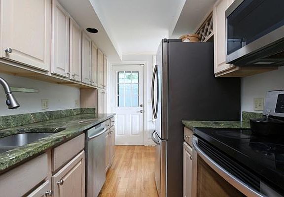 Price to sell! Located in Belmont Hill, just one block to the Belmont Center and commuter rail station to Boston downtown. Steps to shops and restaurants and more. The unit entrance is on Center Street among a lovely enclave of houses. This is a two-story condo (second and third floor) with an entrance on ground floor. This condo has a first-floor bedroom with master bath. The updated galley kitchen (brand new refrigerator) with breakfast bar connects to the large sunny dining, living areas where you have a beautiful Boston Skylight. Two bedrooms are on the 3rd floor with full bath. There is plenty of outdoor deck with and gardening space of exclusive use. Tandem parking of 2 cars is included. School districts are Winn Brook Elementary, Chenery Middle, Belmont Hill School (walking distance - 25min.), The Emerson-Park House was built in 1833 and converted in 1981 which is a great combination of old charm and modern amenities