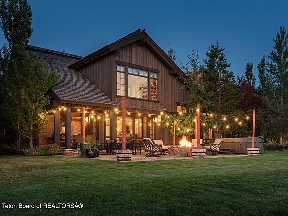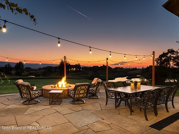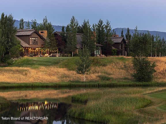 With quality and finishes not easily found, this impressive home is coupled with a transferable Tributary membership creating the perfect blend of elements at this Teton retreat. Mountain moss stone, large timbers, solid hardwood and cabinet front appliances are just a few of the elements complimenting the grand spaces inside. The living and entertaining spaces each carry their own unique elements with a dramatic stone fireplace and tongue and groove ceilings, two buffet prep areas and more. Each bedroom features its own walk-in closet and ensuite. Outside, sprawling stone patios give way to incredible views including the perfect blend of fairway, ponds and bridges with the Big Hole range creating a backdrop for the best sunsets in the Western US. High-end furniture package negotiable.