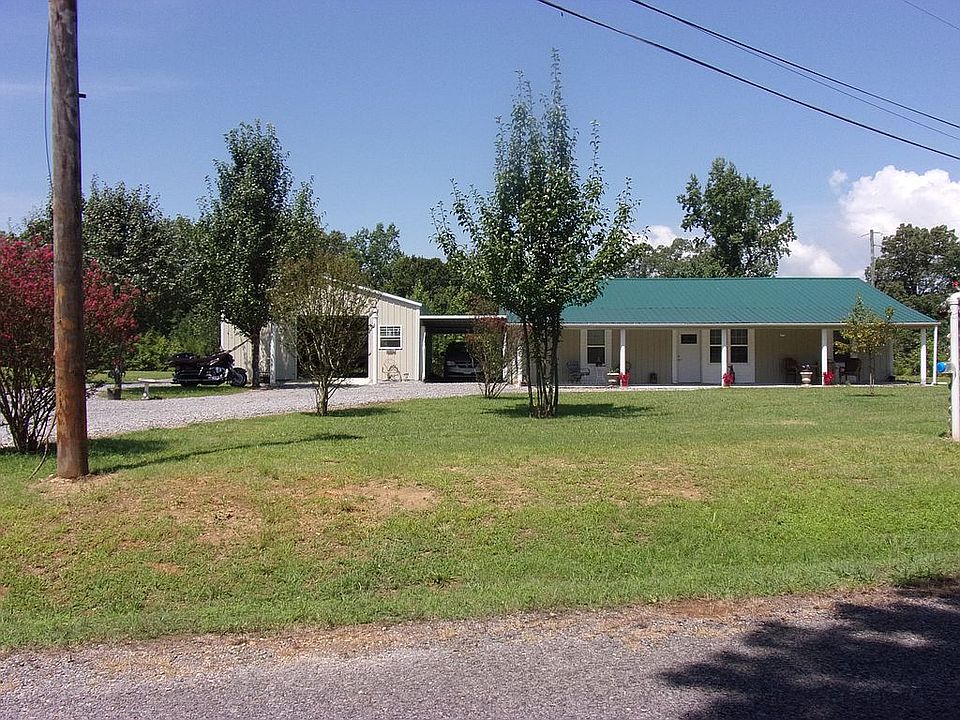 Will sell for 139,999,Just built in 2018, this cute beauty is a metal house trim in vinyl with a lot of character. Built as a forever home, this two/possibly three bdrm or office is something to see. Is a split floor plan is trim out with cedar with an inside laundry/mud room inside the back door. The master bdrm has an on suite with a unique custom cedar shower bath. There are two baths in house and one bath in the drive thru garage. Don't get wet bringing the groceries in again. Carprt, garage and back porch are all covered. Garage has 9 foot ceilings, and two roll up garage doors that give you a wonderful breeze while you work. Almost like having a fan w/o energy costs. Low maintenance and plenty of room, is what most homeowners want. Also full length front and back porches.