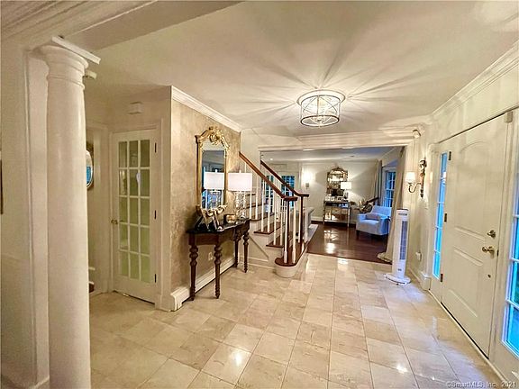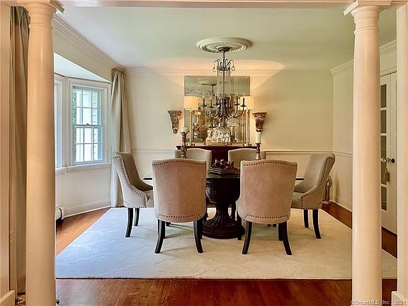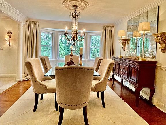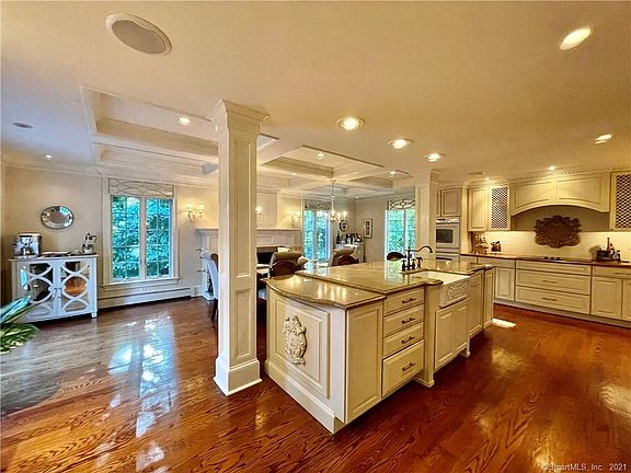 This impressive center hall colonial has been updated and meticulously maintained. This home boasts an abundance of natural light with an fabulous floor plan. Great for entertaining. Highest quality of workmanship and fine attention to detail throughout.The main level features an impressive custom kitchen where this home shines: boasting an expansive center marble island,coffered ceiling with molding, floor to ceiling windows and dentil molding. The focal point of the family room is the architecturally designed fireplace with marble surround, custom millwork, coffered ceiling and a wet bar.Private backyard with a two tiered blue stone terrace easily accessed through family room and kitchen.Formal living room and dining room has space to enjoy gathering together.The welcoming foyer leads to the second floor offering a soothing master bedroom with walk in closet, ensuite bath with soaring ceiling, marble throughout. This leads up to claw foot soaking tub,massive walk in shower with body spray and two linen closets.Three additional, well appointed, bedrooms with large closets and elegant chandeliers.Convenient laundry area, bathroom with limestone tile,vast walk in shower,bathtub with decorative panel.Gleaming hardwood floors, recessed lights,custom wood finishes inside and out,an abundance of closet space,security system and an oversized garage complete this beautifully appointed home which is tucked away on a private road creating a peaceful setting to enjoy for years to come.