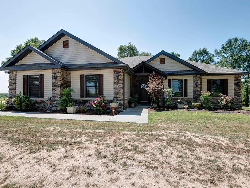 Come live in a 3-acre park with great views! Owners take meticulous care of their home and have made numerous improvements. Located just 5 miles west of Bolivar you are minutes from shops & services. Also, just minutes from Stockton Lake and Conservation hunting land.This home has a large open floor plan with two living areas. The kitchen has granite counter tops and lots of cabinets, Large heated and cooled Sunroom with a new gas fireplace. The master suite is spacious with two closest and the titled step in shower is amazing with triple shower heads with body sprays! Large utility room with sink. There is a storm shelter in the garage along with emergency generator hook up. Large back deck is shaded in the afternoons. The detached workshop (27' x 45') is headed and cooled with concrete
