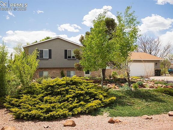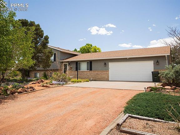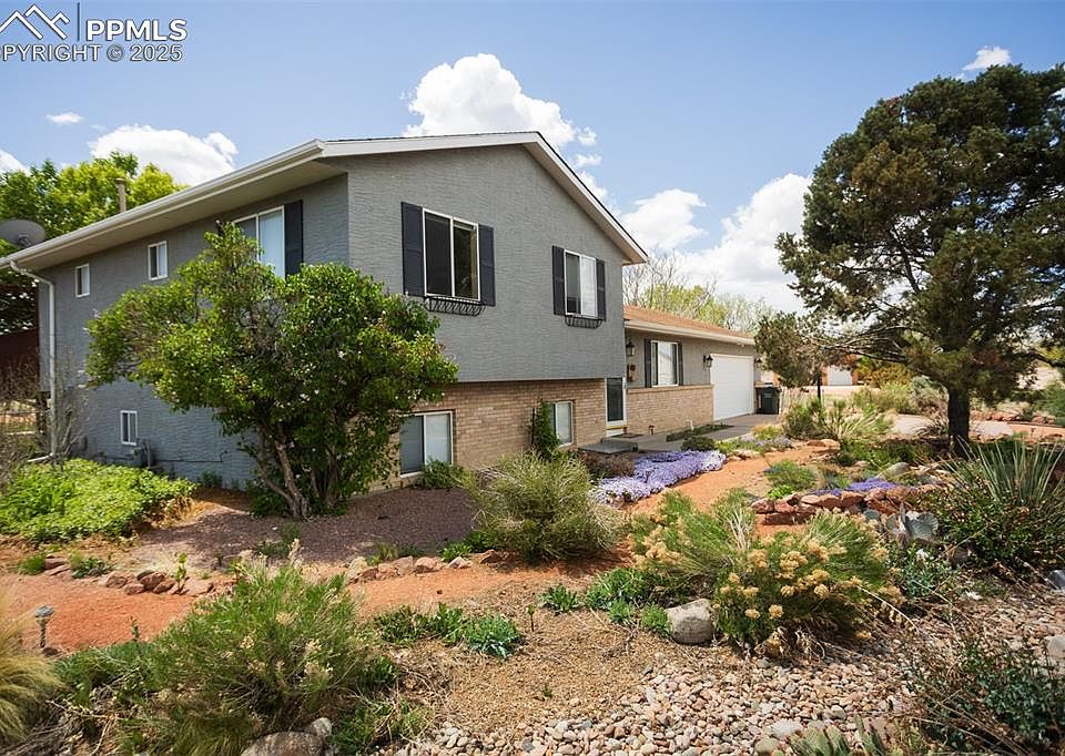 Welcome to this wonderfully landscaped home on 1.23 acres with mountain views! Complete with a detached 2 car garage AND an attached 2 car garage, ample space for RV parking, zoning allowance for horses, and a section already started for a garden. It's well-maintained inside and out! The main level features a cozy living room highlighted by the gas fireplace. The kitchen features stainless steel appliances, a pantry, and a good amount of cabinet space. The dining room has a door that leads out to the enclosed sunroom, the perfect oasis. Upstairs, the spacious primary bedroom includes an attached bathroom, walk-in closet, and sliding glass door to the back deck! There are two more bedrooms on the upper level as well as a full bath with jacuzzi tub. Downstairs, the large family room provides additional living space. Also in the basement is an office, laundry room, and half bath. With great xeriscaping, fully fenced lot, outdoor living spaces, 2 garages, and mountain views this home is a must see. A little patch of heaven with no HOA! Come check it out today.