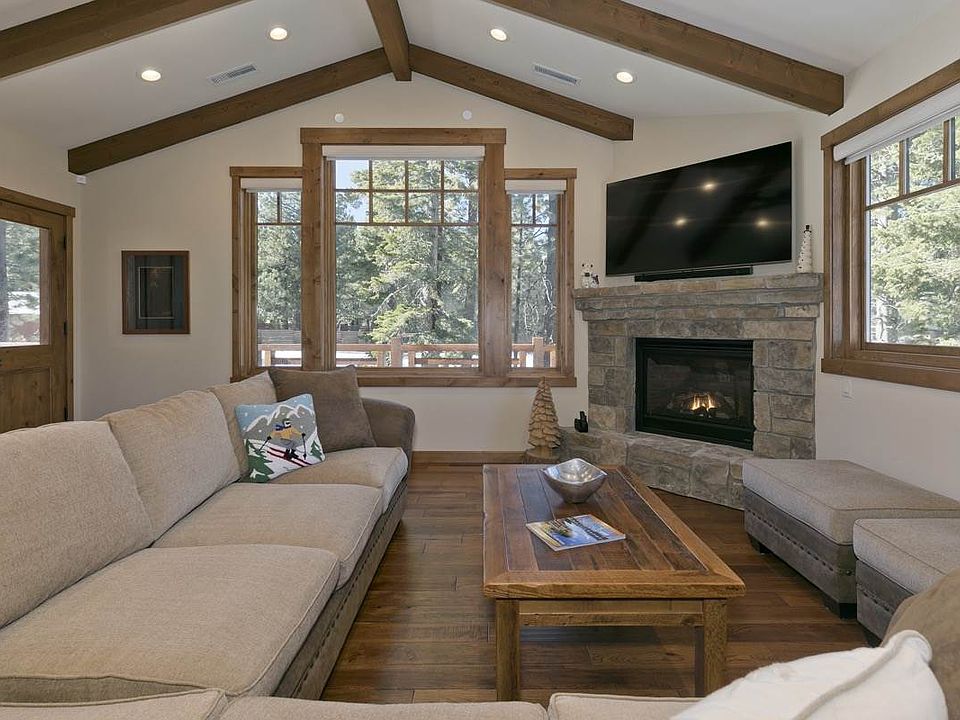 Single family home on sunny parcel zoned for resort nightly rentals. Semi custom house in desirable Gray Bear development on 6th fairway of Sierra Star Golf Course. Four bedrooms, 3.5 baths, laundry room and double garage. Vaulted ceilings on second level. Knotty alder doors, wood floors throughout, with tile in baths and carpet in bedrooms. Two gas log fireplaces, one in master. Granite counters and island in spacious kitchen. White farm sink & all LG Black stainless appliances in kitchen, including wine cooler. Hot water circulation system to baths and kitchen. Master bath has both shower and soaking tub, double lavs. Laundry room has cabinets over folding table and washer/dryer. Exterior: Channel Rustic Cedar siding recently oiled with shuttered windows. Natural rock wainscot. Upper deck has spa outlet and new gas BBQ. Exterior front, side and rear yards landscaped with pavered walkways and patios, sprinkler system throughout. Security system includes RING and NEST surveillance cameras. Remote system to turn heaters, motorized shades, water, lights and garage door on and off when away from home. This home is very close to skiing, golf and the Village at Mammoth.