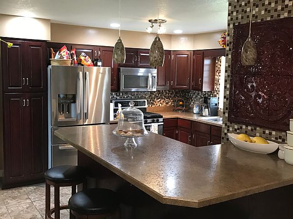Beautiful 3bed updated Ranch home in country setting with open view of field and skies! All on one level, this home features an impressive kitchen with stainless appliances and breakfast bar area with living room through the antique barn doors to the front, formal dining on the left and family room with wood burning fireplace on the right. This space is perfect for entertaining! 3 beds down hall with full bath and master bath. Family room opens to the patio overlooking the backyard and attractive views. Established vegetable garden in rear yard. The home comes with all appliances and are in working order. New furnace 2017, newer roof, windows, and patio with updates throughout. Walking distance to the high school and jr. high.
