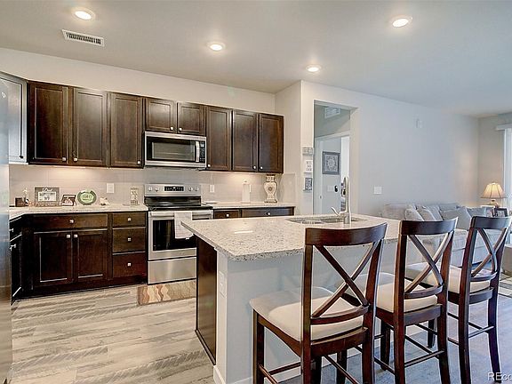 FABULOUS condominium in Fremont Place! Secured building welcomes you to 2 Bedrooms and 2 Bathrooms on the 3rd floor! Spacious open layout between the Living Room and eat-in Kitchen. Kitchen features granite-slab countertops, decorative glass tile backsplash, sleek dark cabinetry, stainless-steel appliances, and large center island with seating x3. Covered patio with peek-a-boo Mountain View! Primary Bedrooms offers private 3/4 bath with dual sinks and big walk-in closet. Laundry Room in the unit! Fitness Room is also on the 3rd floor, and a community deck with BBQ, fire pit, and seating is on the 4th floor, overlooking the Park! Covered parking! Secured building!