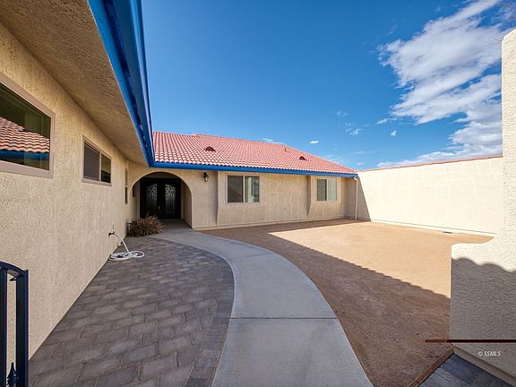 Spectacular 4 BDR, 3-1/4 bth home w/ panoramic view from prominent College Heights location. Approach home thru large courtyard via wrought iron gate & enter thru regal new custom metal doors. Meet guests in friendly carpeted living room inside entrance. Transit to capacious kitchen & family room area. Kitchen has dazzling wrap-around granite counter, overhead lights angled to avoid shadowing, LED arrays under cabinets bordering counter, newer stove & wine cooler. Entertain in large adjacent dining & family room areas w/ vaulted ceiling, fireplace framed by stone facade & breathtaking view of mountains. Transit to bedroom area via hallway lined by lovely wooden cabinets & shelves. Ample guest bedrooms & bath. Opulent primary suite " vaulted ceiling, specialty overhead fans, vacuous space for king bed & sitting area, & exceptional corner window view. Master bath w/ dual vanity, immense shower, multiple shower heads & specialty stone flooring. Size-able extra guest bedroom w/ bath adjoining garage. Large separate garage/workshop w/ bath next to house. 2-zone evap. & mini-split dual cooling. Owned solar. Abundant exterior space. Very special home - must experience.