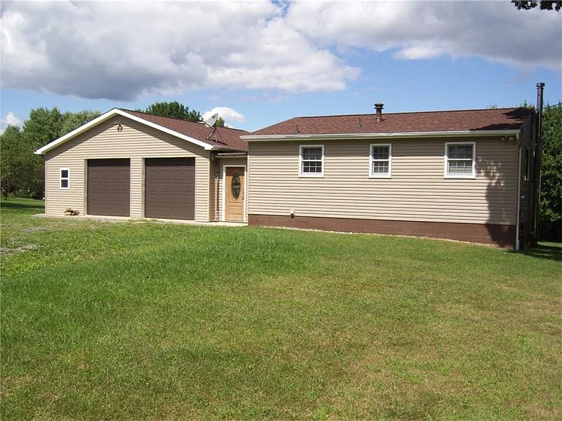 Very well maintained Ranch home with a new 30x30 2 car attached garage, new roof and vinyl siding. Pellet stove in the living room and a wood burner in the basement. Newer high efficiency gas furnace. Tree lined property with a large level front and back yards. Appliances stay some furniture can too.