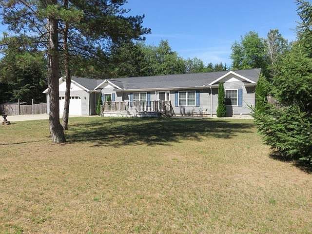 Very spacious home, very open living/dining/kitchen area, split bedrooms with master suite including walk-in close and large bathroom at one end, the remaining 2 bedrooms and bath at the opposite end of home,wood stove in living area, central air, full basement with ingress/egress window, exterior door, large 24 x 32 garage, generator ready and included in sale, #6463