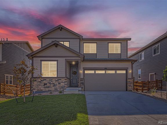 Welcome to this stunning brand-new home located in Colliers Hill. This house has everything you need and more. The seller is offering a $5,000 credit that you can use towards closing costs. An additional $5,000 is available if you're under contract by December 31st. This newly built and upgraded Pearl home is located on a premium lot at the end of a quiet cul-de-sac. It features four bedrooms, three bathrooms, and has been expertly designed with an open-concept main floor, a fully-equipped kitchen, a dining nook, a mudroom area, and a spacious family room with a cozy gas fireplace. The main floor also features a bedroom/office, ideal for those who desire flexibility and versatility in their living space. Step out onto the covered patio, which offers breathtaking mountain views, making it the perfect place to hang out, relax, and unwind. Upstairs, you can enjoy a generously sized primary suite with a massive walk-in closet and a private en-suite bathroom featuring a spa-style shower and double vanities. You will also find two more spacious bedrooms, a full-sized bathroom with dual sinks, a laundry room, and a large loft that offers plenty of additional living space. The Colliers Hill community offers its residents a wide range of amenities and activities. These include multiple parks and playgrounds, sledding hill, a clubhouse, two outdoor swimming pools, and over 15 miles of scenic trails. The community is located near the disc golf course, Erie single track, Erie Community Park, and Rec Center, with connections to local and regional trails. Access top-rated St. Vrain Valley District schools easily and shopping and dining options in charming Old Town Erie—convenient commuting to Boulder, Denver, and DIA.