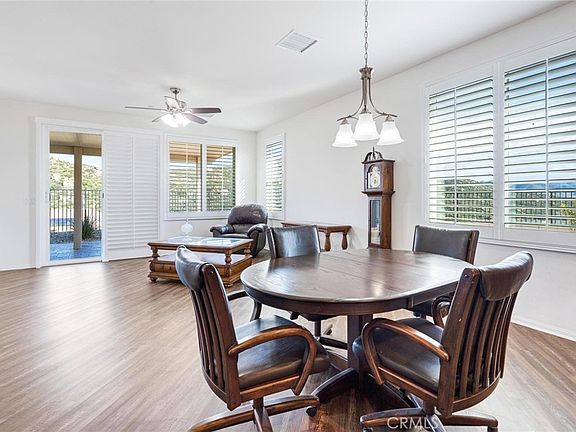 EXCELLENT LOCATION at the End of a Cul-de-sac with Panoramic View of Mountains and situated high above the neighboring homes!! Popular "Retreat" model in the 55 Plus Guard-Gated Community of Four Seasons. 2 Bedrooms Plus Den/Office and 2 Bathrooms. Plantation Shutters thru-out, Laminate Flooring with Carpeted Bedrooms and Tiled Bathrooms/Laundry Room. Island Kitchen has Walk-in Pantry, Lots of Cabinets (Pull-Out Drawers in lower Cabinets), Granite Countertops and Stainless Steel Appliances ("GE" Gas Range, Built-in Microwave and Dishwasher and "Whirlpool" Refrigerator). Spacious Primary Bedroom has Walk-In Closet and Views of the Mountains. Primary Bathroom has Double Sinks with Walk-In Shower and Privacy Door to the Commode. Guest Bedroom is Spacious and situated next to the Guest Bathroom. Interior Individual Laundry Room has Sink and Cabinets. Ceiling Fans in Bedrooms and Great Room. Direct Access to 2-Car Garage. Tankless Water Heater in Garage. Back Yard has Aluminum Patio Cover and large Side Yard has 3 Citrus Trees (Navel Orange & Lemon). Low Maintenance Front and Back Yards. Four Seasons features 3 Club Houses, 3 Pools/Spas with one indoors, Dog Park, Pickle Ball Courts, Tennis Courts, Shuffleboard, Billiard Room, Movie Theater, Bistro, Massage Parlor, Hair Salon, Gyms, Dog Park and over 6 miles of Walking Trails. Close to Shopping and Freeway. Only 30-45 minutes to Palm Springs. Living in Four Seasons is truly like living in a Resort!